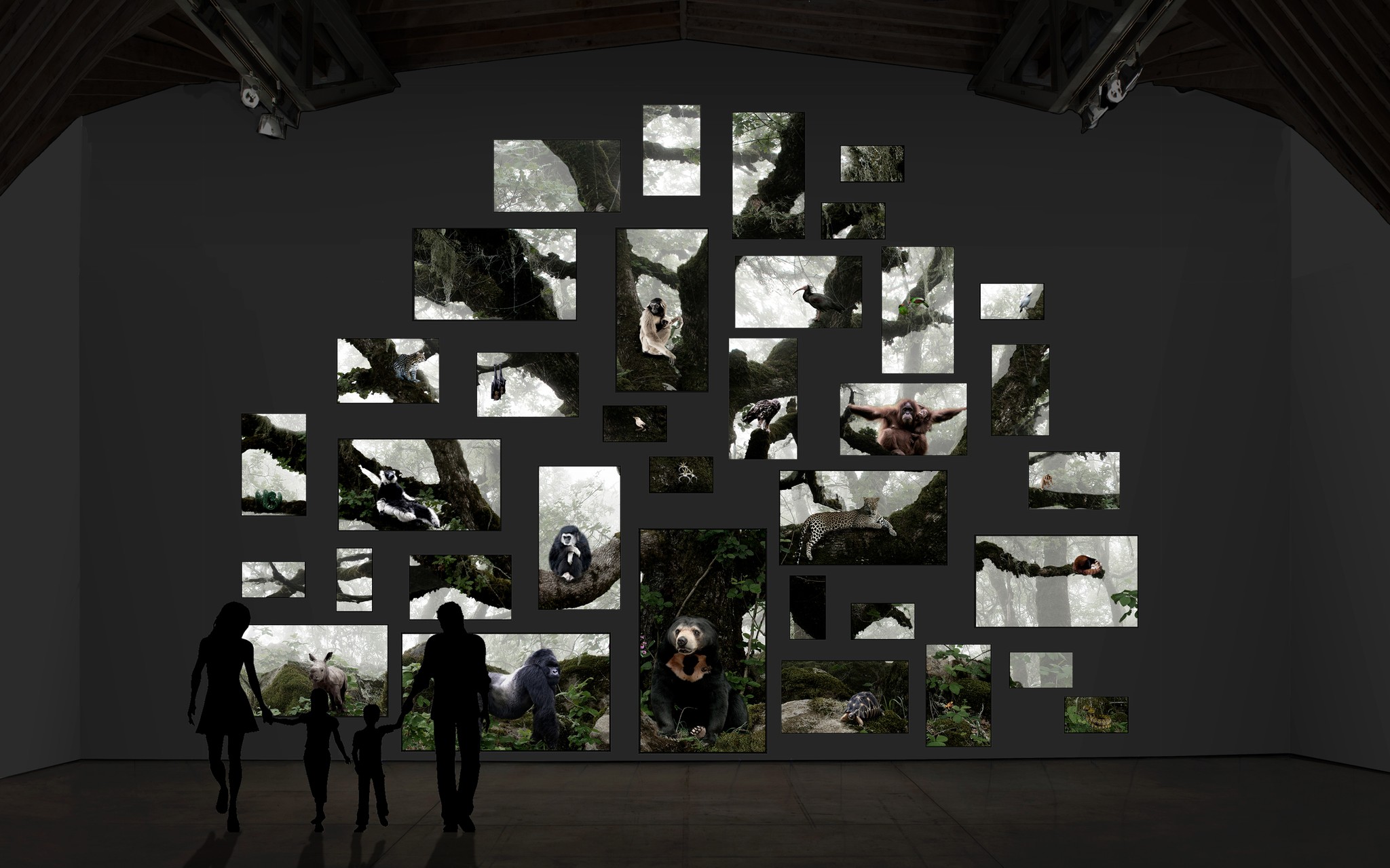 Portraits of threatened species in a responsive environment create a cutting edge video art installation engaging human beings in an emotional, sensory, biophilic experience.